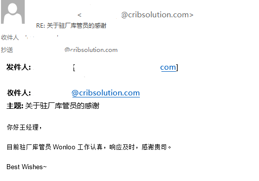 目前库控已经根据不同合作客户的需求情况分派了多名专业的驻厂经理,专门做一对一的现场服务。我们也多次收到客户的表扬信,表扬我们的驻场人员能够专业及时的处理问题,将MRO的采购问题交给库控客户十分放心,因为库控专业专注的服务态度,不仅能够帮他们解决MRO的降本问题,更能够让他们将有限的注意力转移到其他更需要他们关注的问题上,从而实现更长远的发展